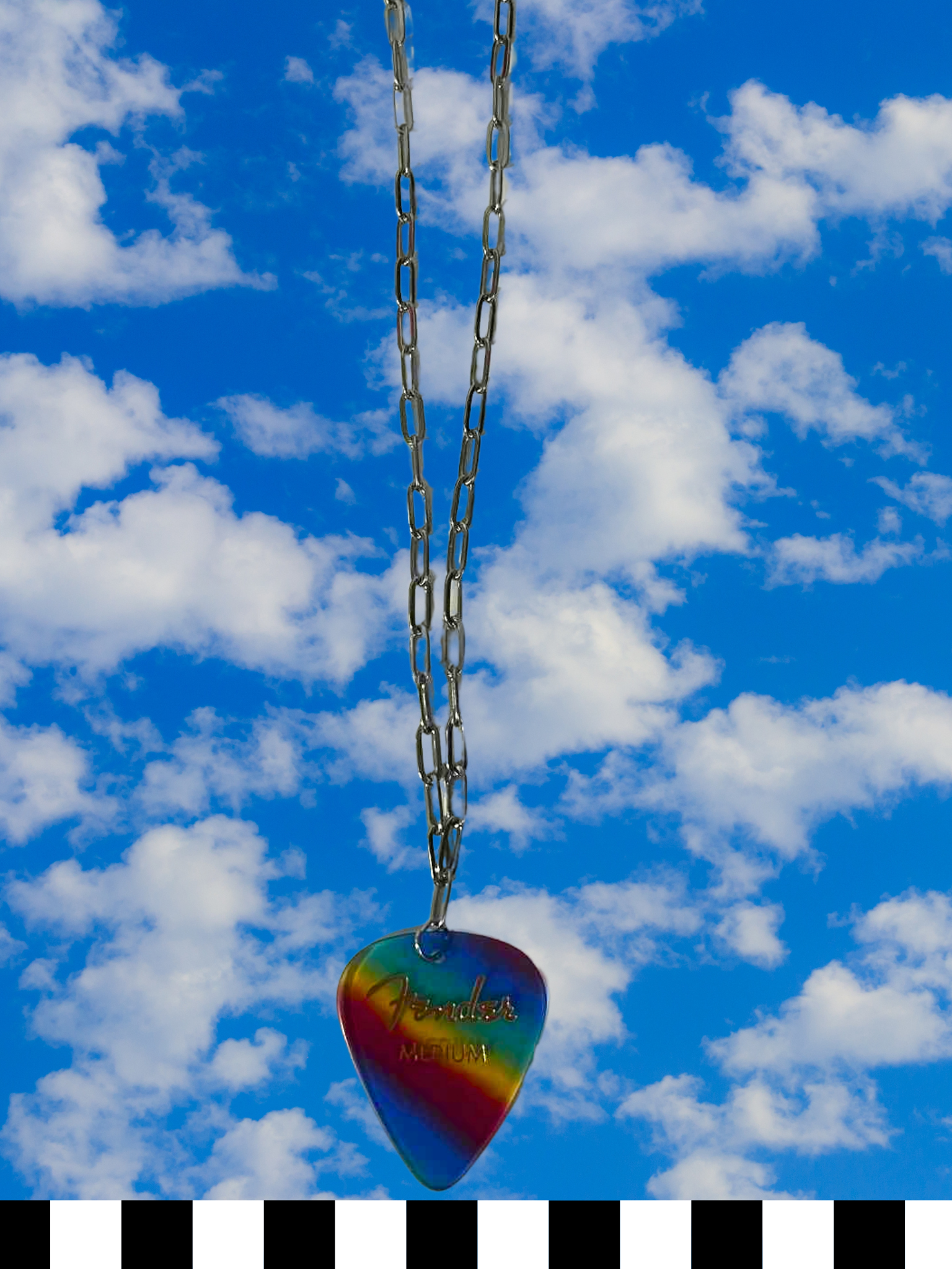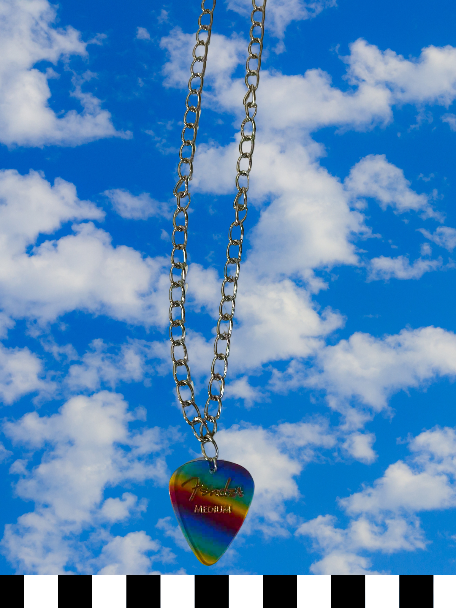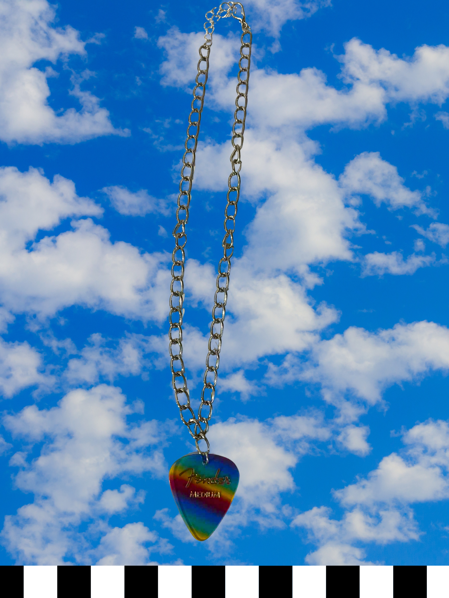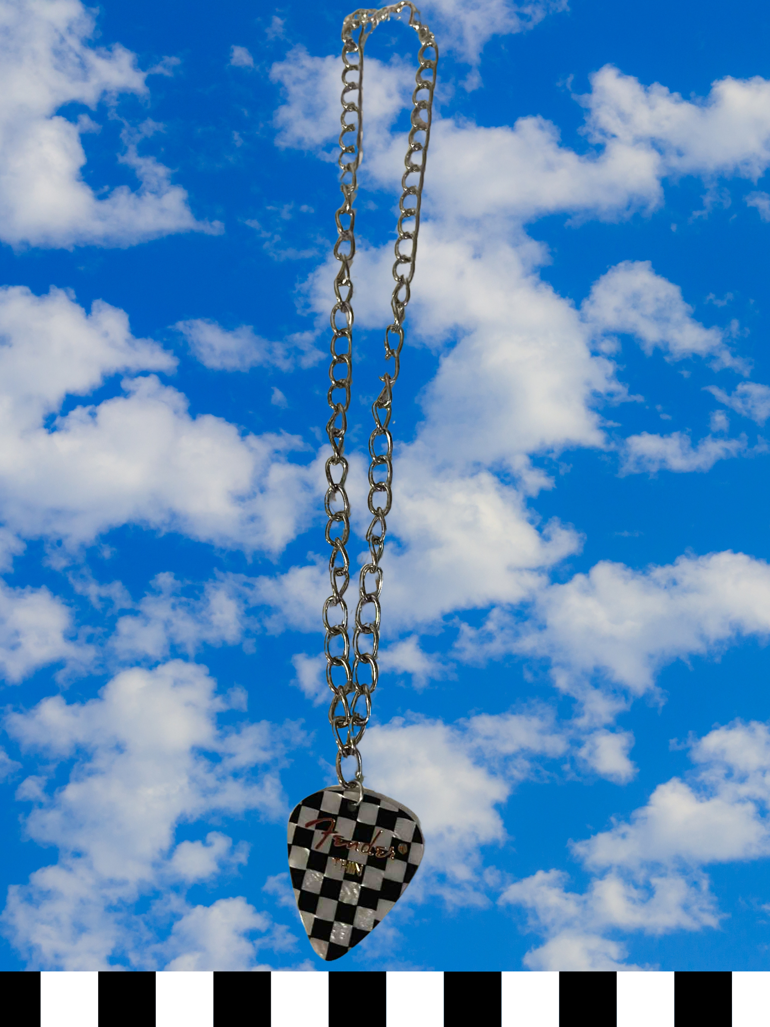 Acoustics by morning charm necklace, silver stainless steel paperclip chain or silver stainless steel O-chain, 14 inches in length, tail chain added for extra comfort fit, charms included in this statement necklace are a fender guitar pick charm, can either come in checkered, tortoise shell, zebra or rainbow. Show out your everyday accessories with this unapologetic statement piece. Sure to bring a cool, bold, and groovy vibe to your everyday clothing wear!Ā