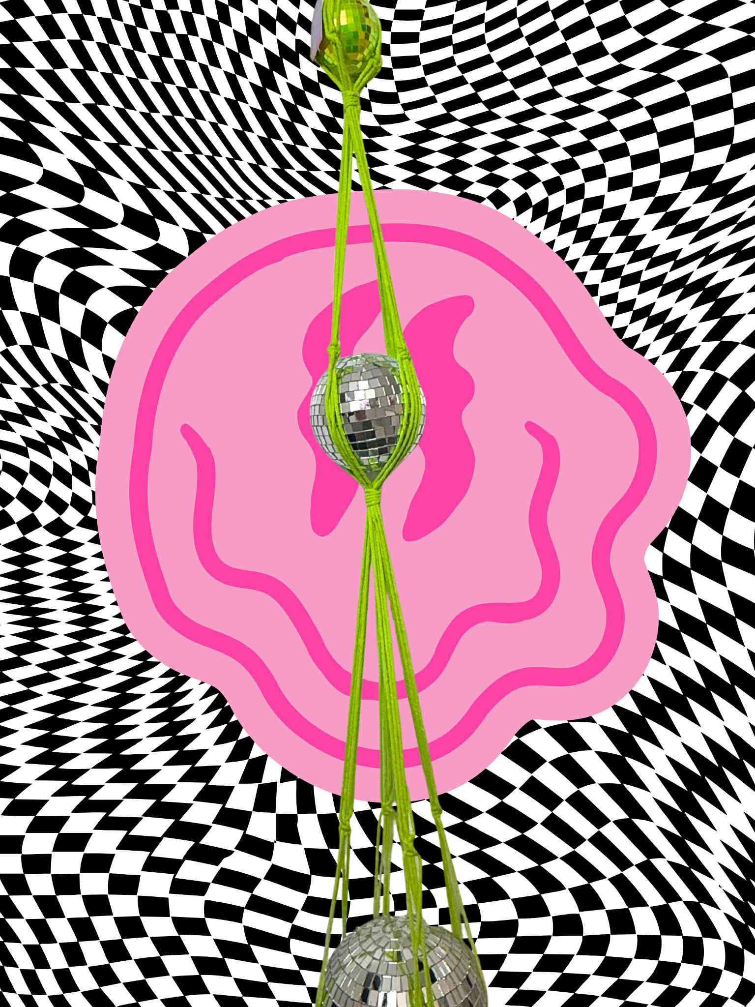Beams of a neon moon macrame disco ball hanger, braided with neon green macrame rope and comes with a 2-inch, 4-inch and 6-inch disco ball! Sparkle up your home with this whimsical, fun addition! Bound to add sunshine, fun and grooviness to any room and every in your home. 👽🌈