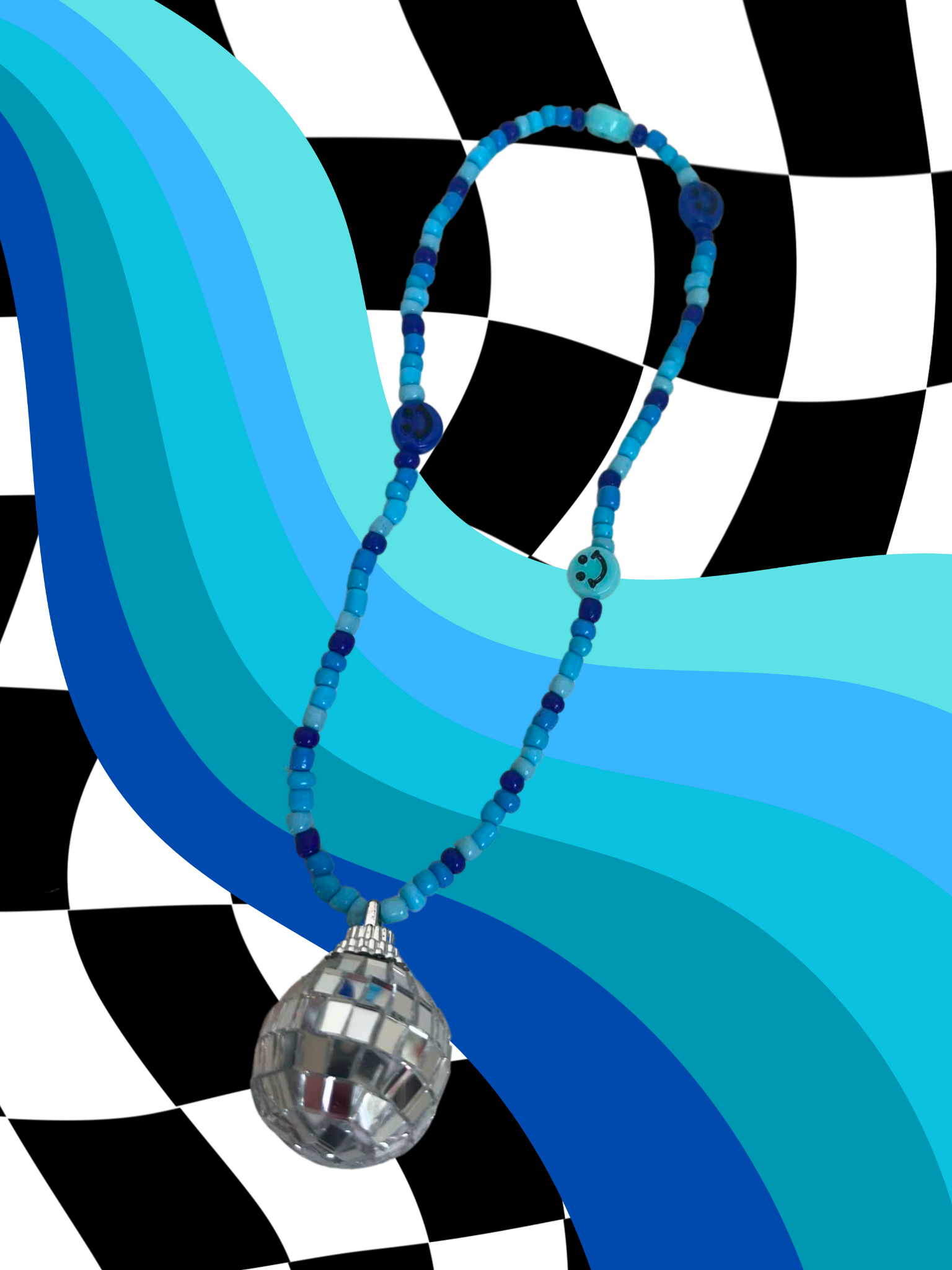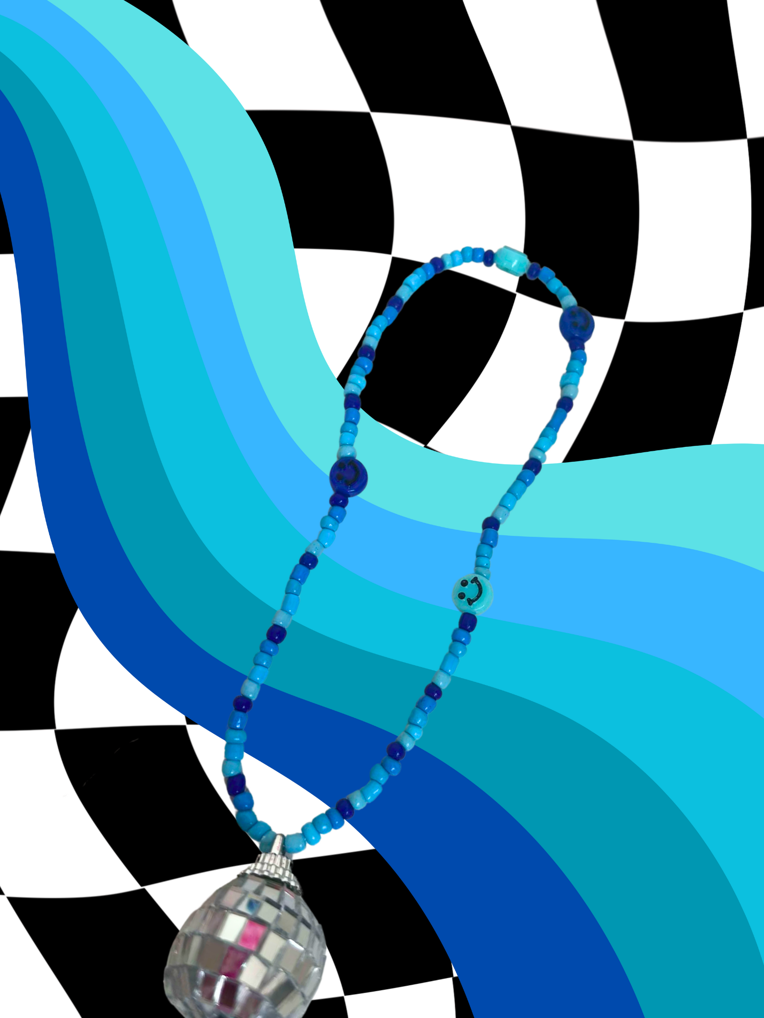 Bluezz rearview mirror charm, colored with blue, blue, blueee, and the added touch disco ball! Sparkle up your car with this whimsical, out of this world rearview mirror charm! This cute and trendy accessory is bound to add a fun touch to your car.