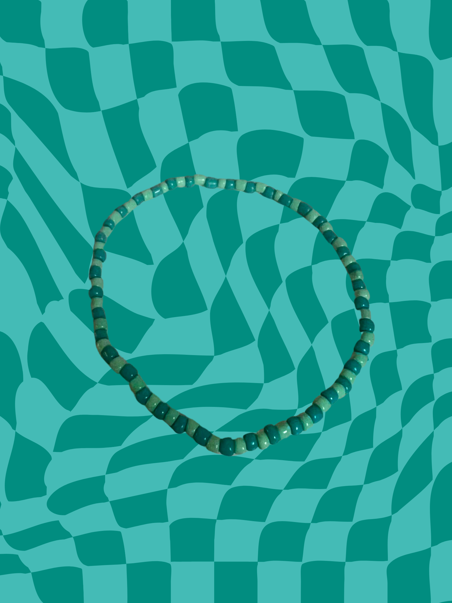 Call of the siren beaded bracelet, threaded with teal and sea green beads! Sparkle up your everyday accessories with this fun statement piece. Sure to bring a funky, colorful, cool vibe to your everyday style wear! Threaded with stretchy elastic string, length is 7 inches.