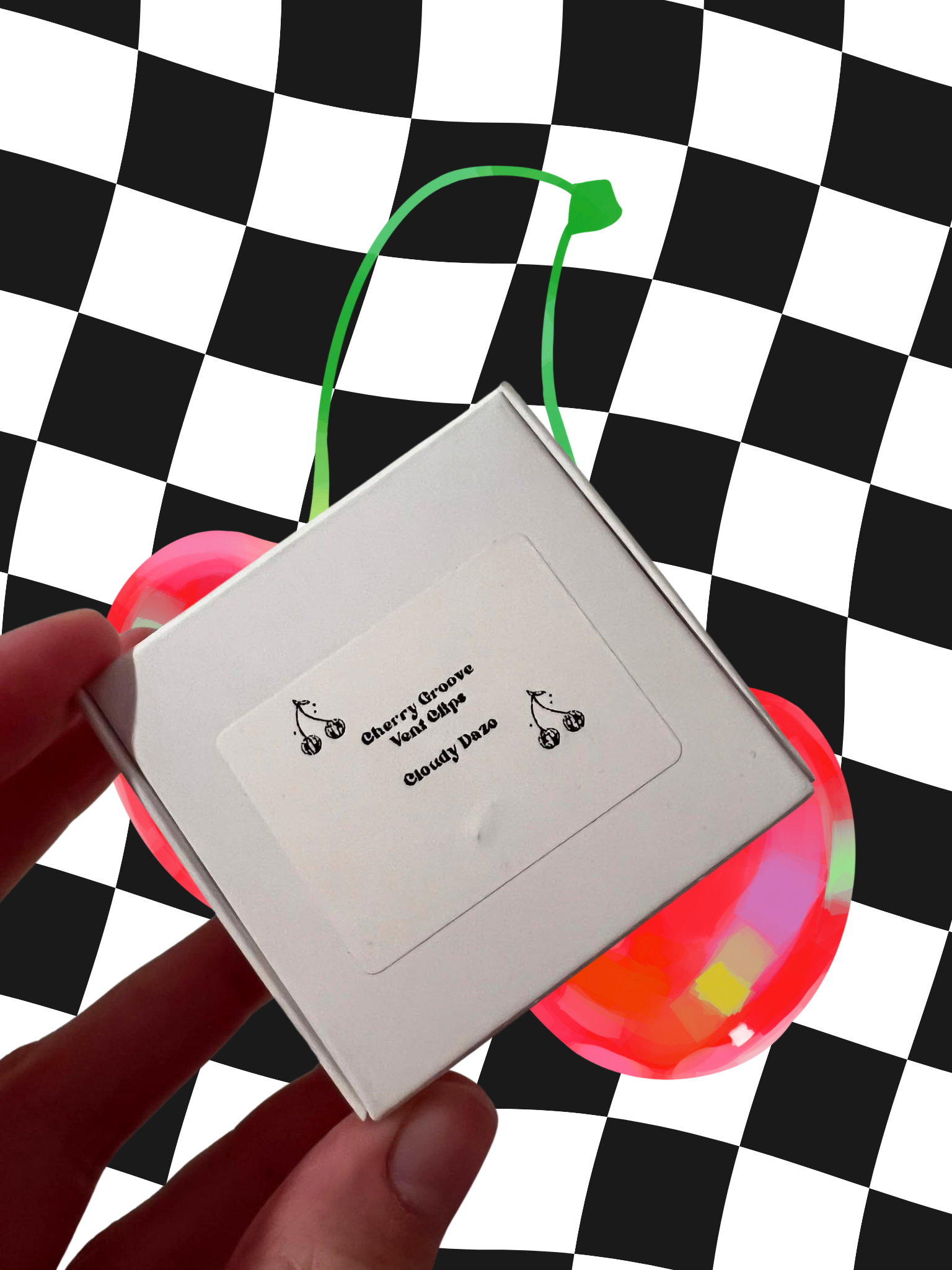 Cherry groove vent clippies! Cutesy up your car with these colorful, whimsical, trippy vent clippies! These cute and trendy accessories are bound to add a fun touch to your car. These do not smell; they're just for the fun aesthetic!