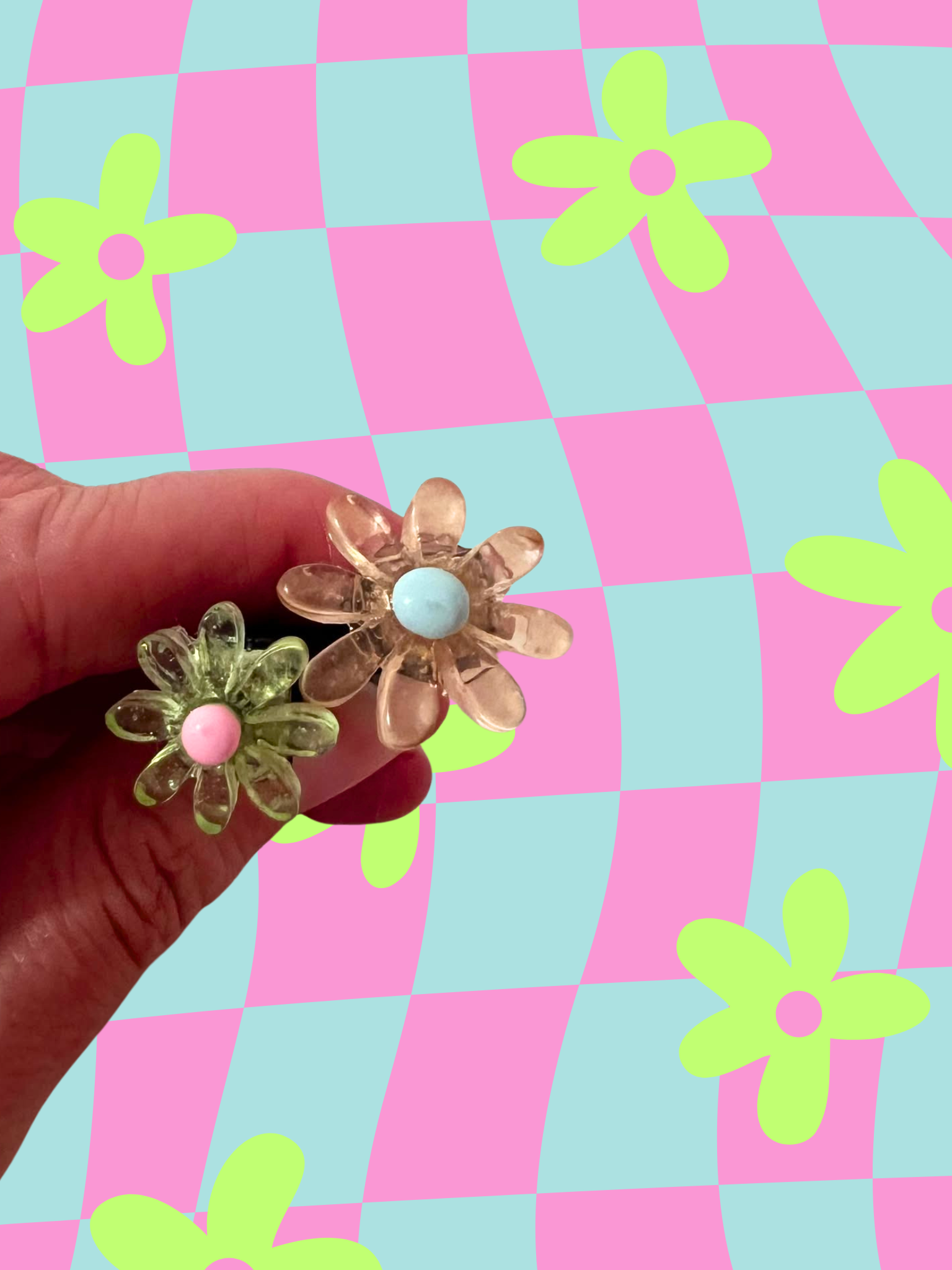 Groovy baby vent clippies! Pictured is what is available, if you have a preferred color set, please let me know upon order! Cutesy up your car with these colorful, whimsical, trippy vent clippies! These cute and trendy accessories are bound to add a fun touch to your car. These do not smell; they're just for the fun aesthetic!