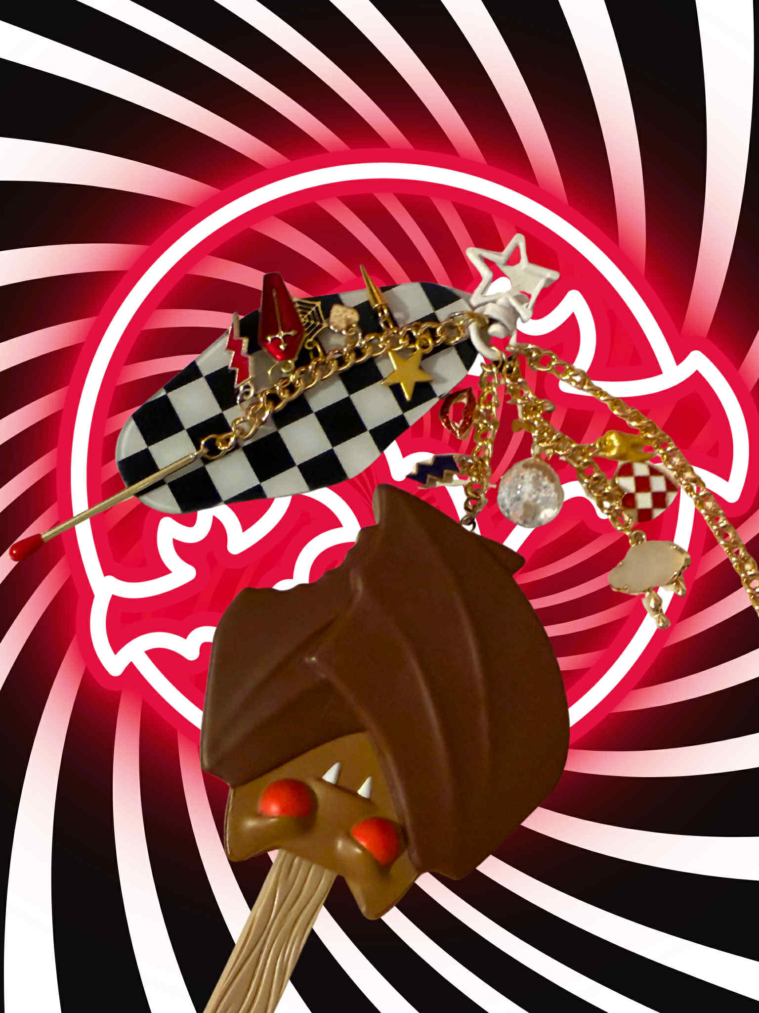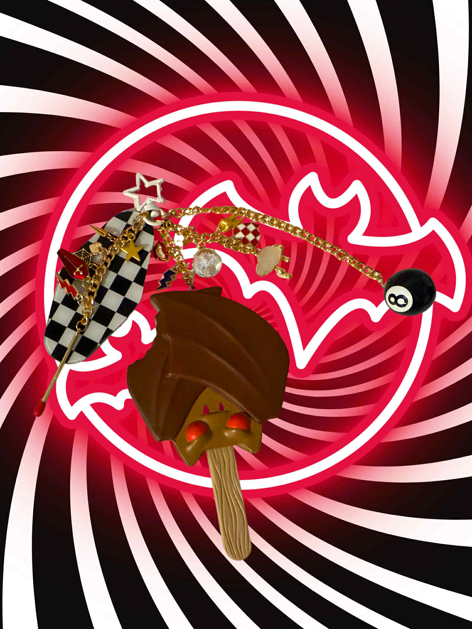 Meltz Bat figure keychain, hand made into the coolest, cutest, grooviest keychain. Added is additional O-chains in gold, varied in different lengths, as well as many different charms included along the chains to match and make your figure standout. Added chains have been soldered to ensure hold on keychain.