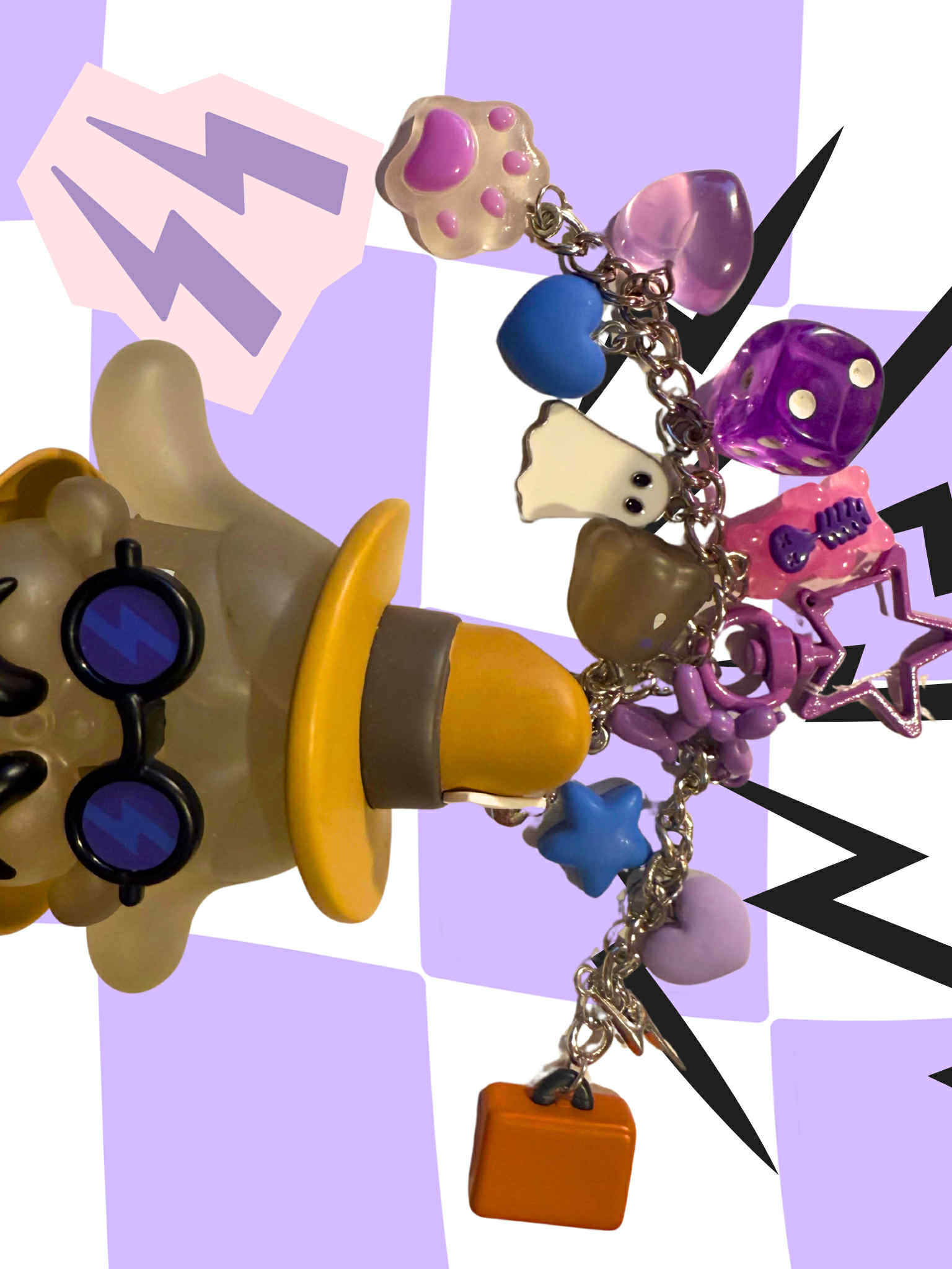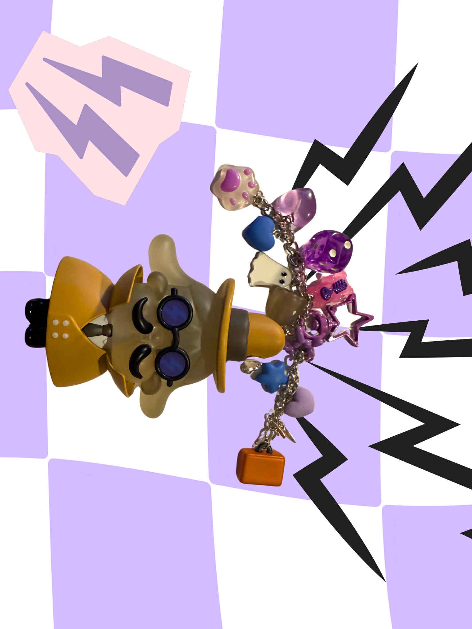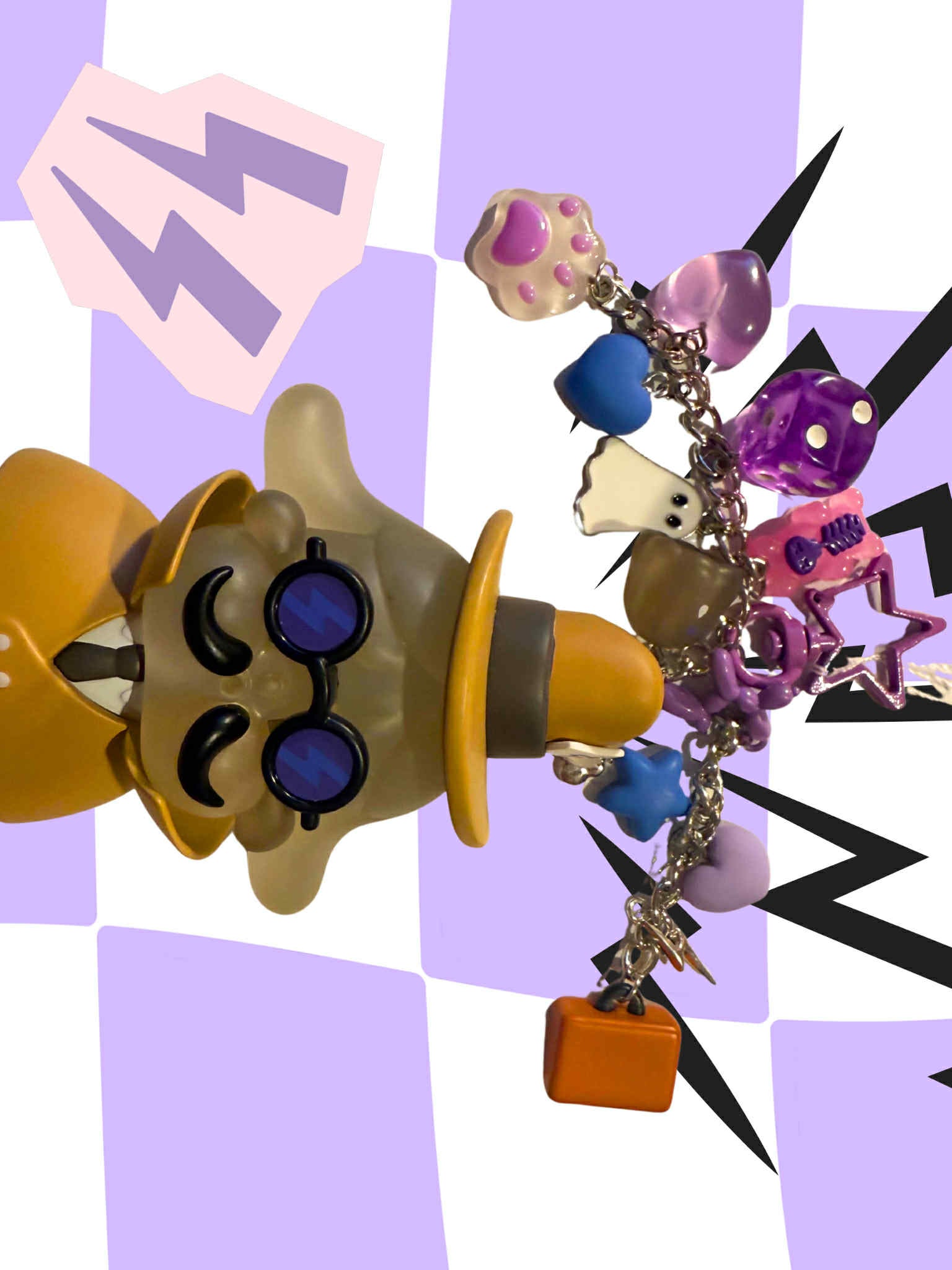 Mr. invisible monster tears crybaby keychain, hand made into the sparkliest, cutest, grooviest keychain. Added is three additional O-chains in silver, varied in different lengths, there are many charms included along the chains to match and make your figure standout. Added chains have been soldered to ensure hold on keychain. All figurines/plushies are 100% authentic and will come with original box and included card, among other varied accessories if necessary.