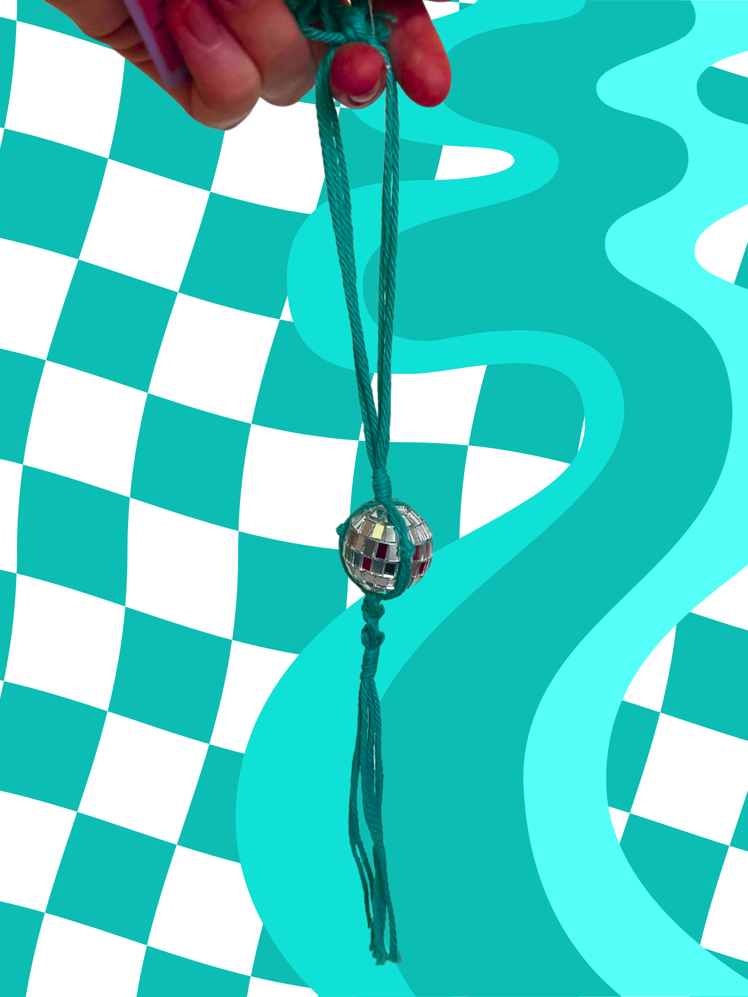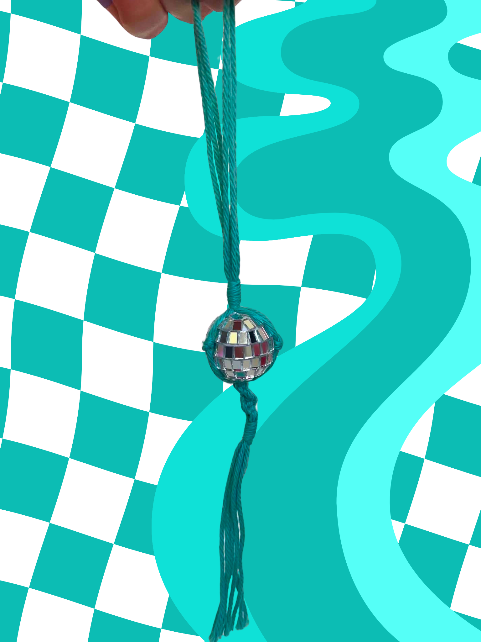 Sea dreams macrame rearview mirror charm, braided with teal colored rope, and the added touch disco ball! Sparkle up your car with this whimsical, out of this world rearview mirror charm! This cute and trendy accessory is bound to add a fun touch to your car.