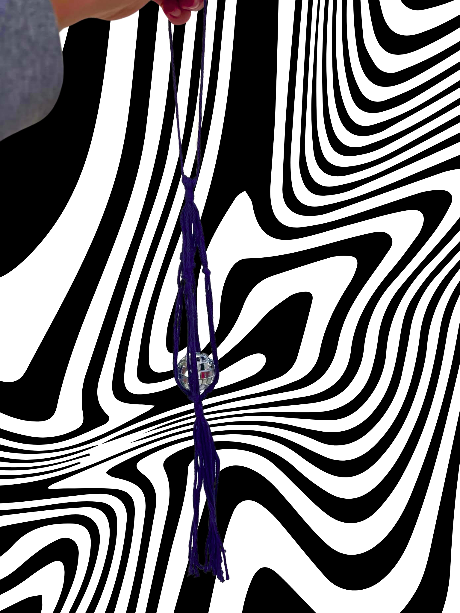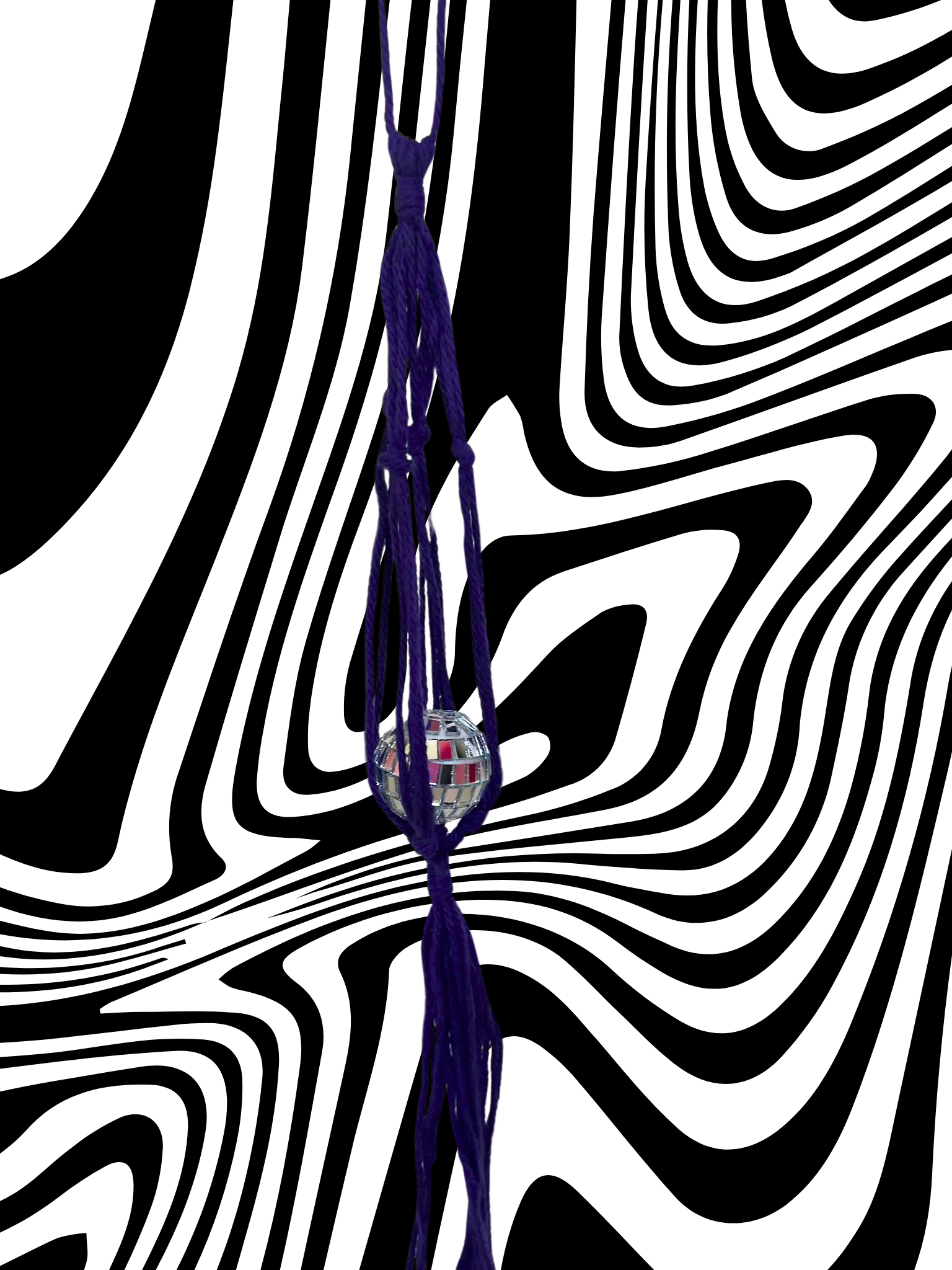 Out of the daze macrame rearview mirror charm, braided with purple colored rope, and the added touch disco ball! Sparkle up your car with this whimsical, out of this world rearview mirror charm! This cute and trendy accessory is bound to add a fun touch to your car.