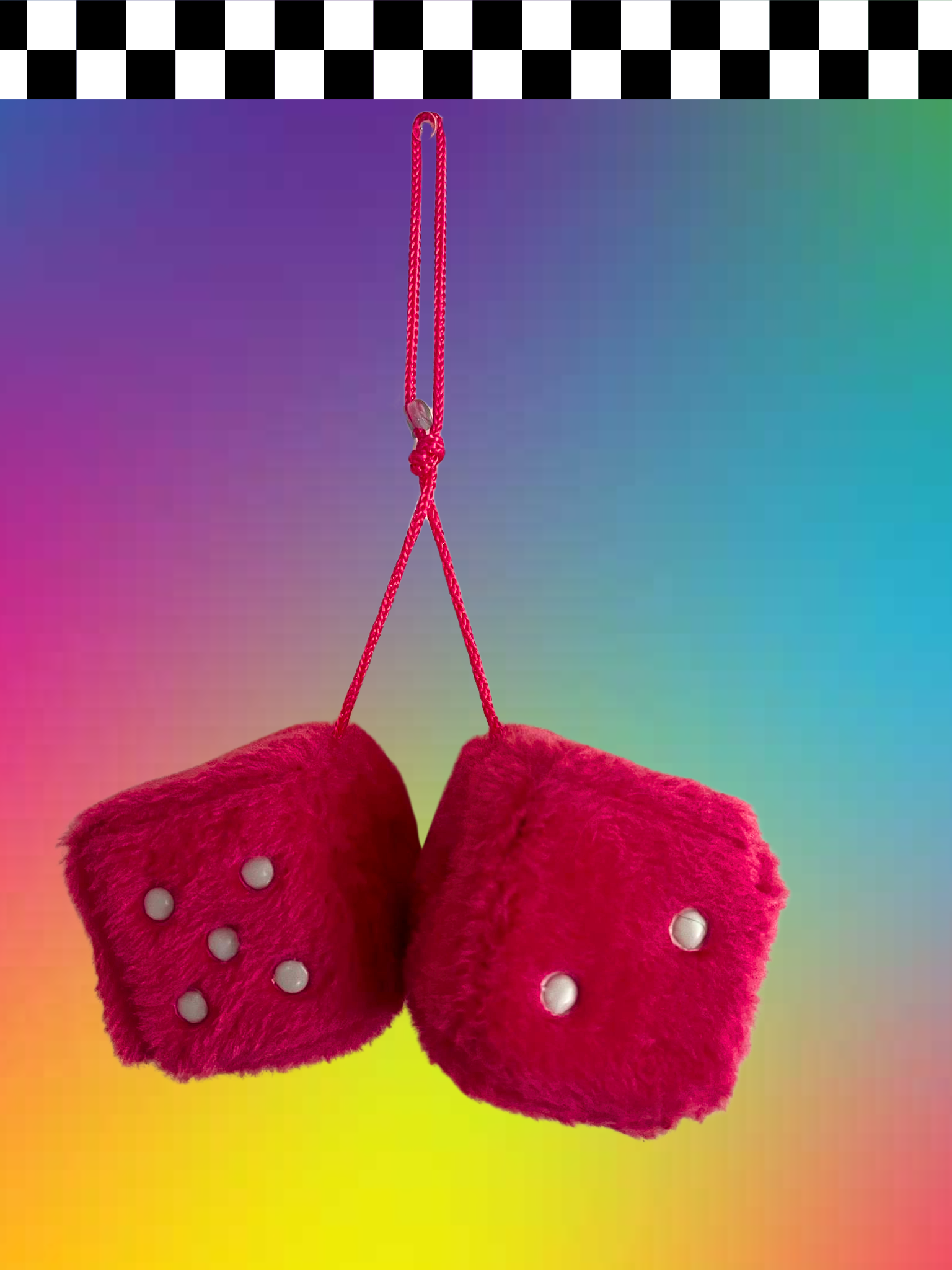 Roll the Dice baby hanging fuzzy dice, available in hot pink! Hang these cuties off your rearview mirror to add a fun, cool touch to your everyday car accessories.