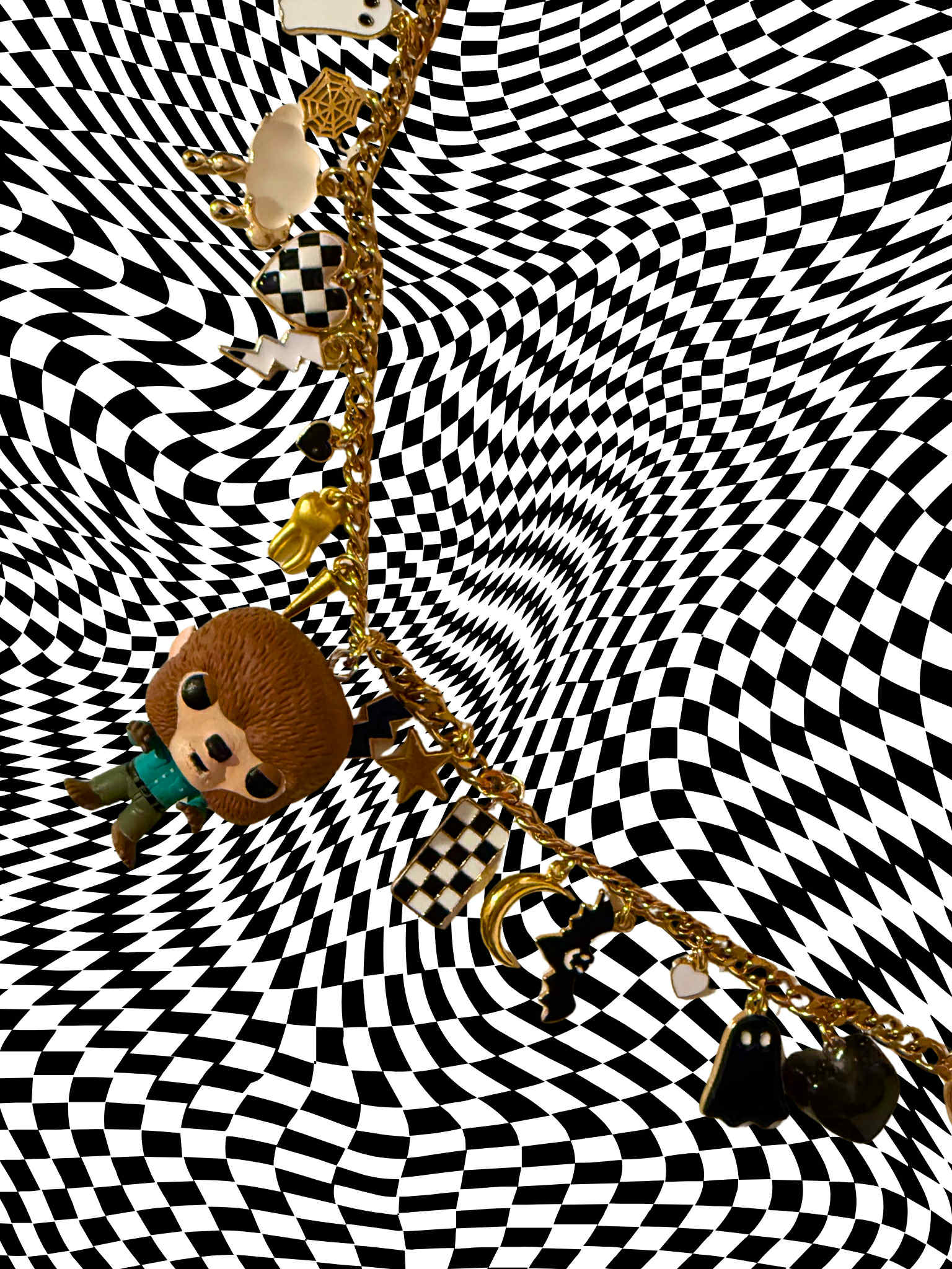 The Wolfman purse charm, gold stainless steel chain, 12 inches in length, there are many charms included along the chain to match and make your character/s standout. Added charms have been soldered to ensure hold on chain. Show out your everyday accessories with this unapologetic statement piece. Sure to bring a cool, bold, and groovy vibe to your everyday clothing wear!