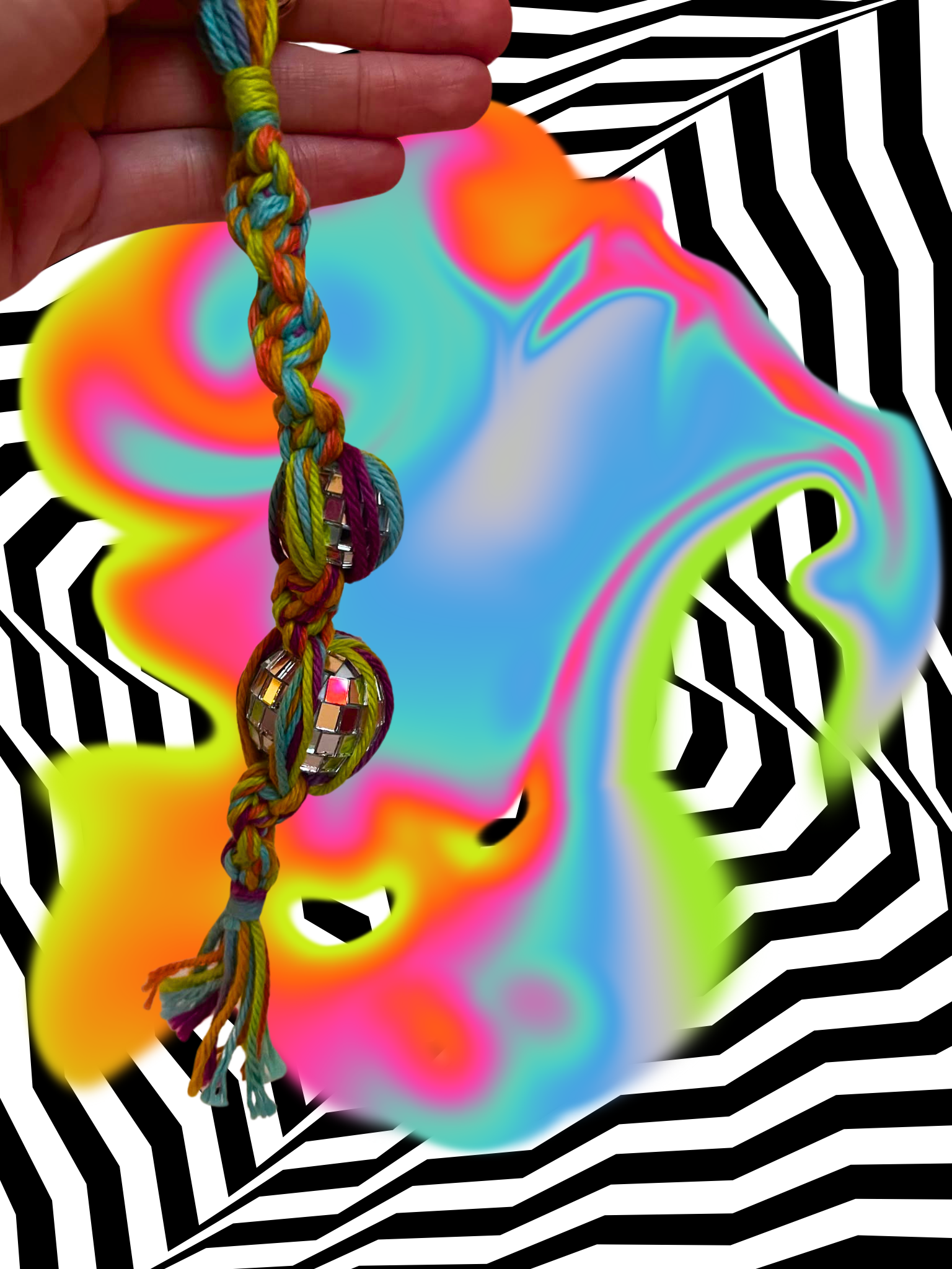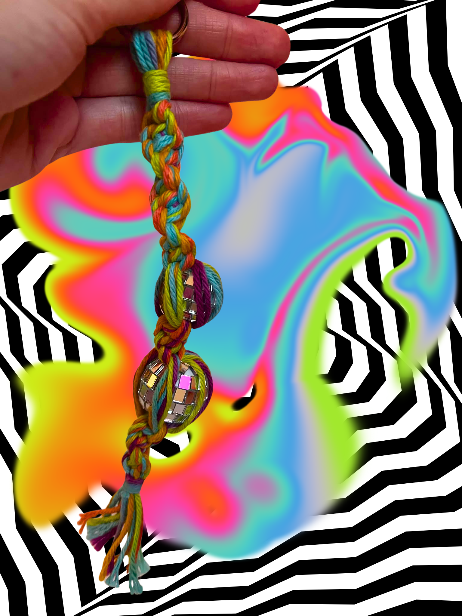 Trippy Ride Macrame Keychain